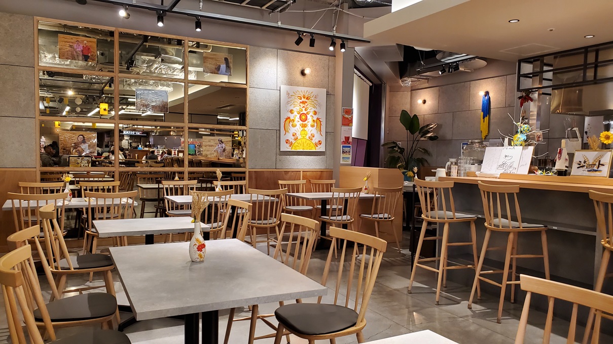 Dachte ich mir: schau doch mal rein — liegt angeblich im zweiten Stock vom Maruei Galleria. Rauf mit der Rolltreppe, ewig gesucht, nichts gefunden.Und genau da bin ich über ein ukrainisches Restaurant gestolpert, das „Zhyto“ heißt.
